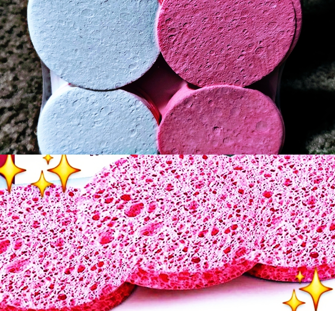 Compressed facial sponges used for cleansing (25 sponges in pink and white)