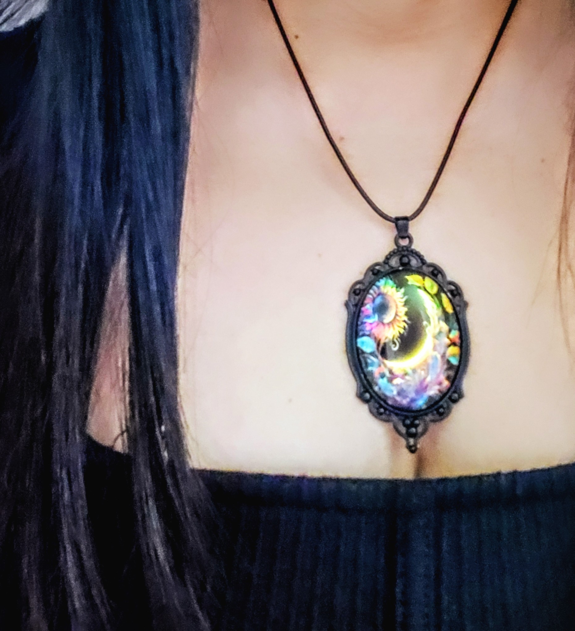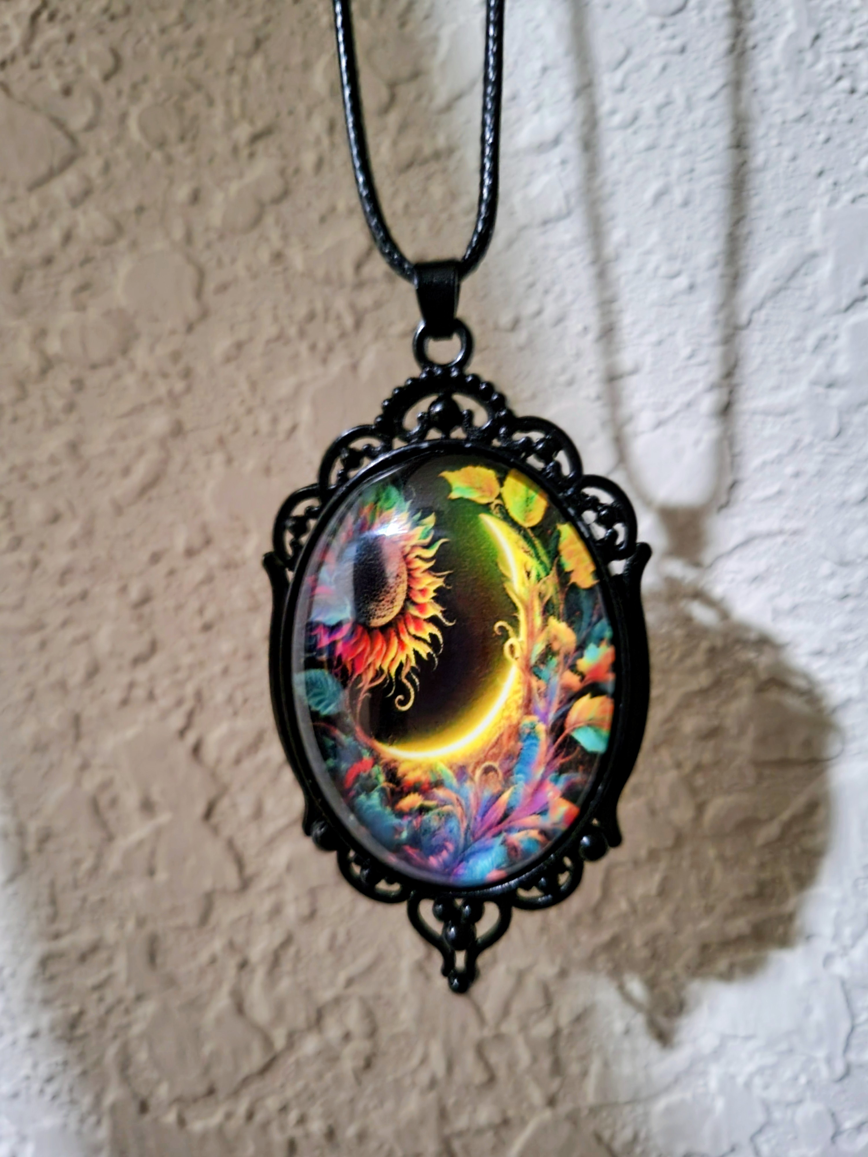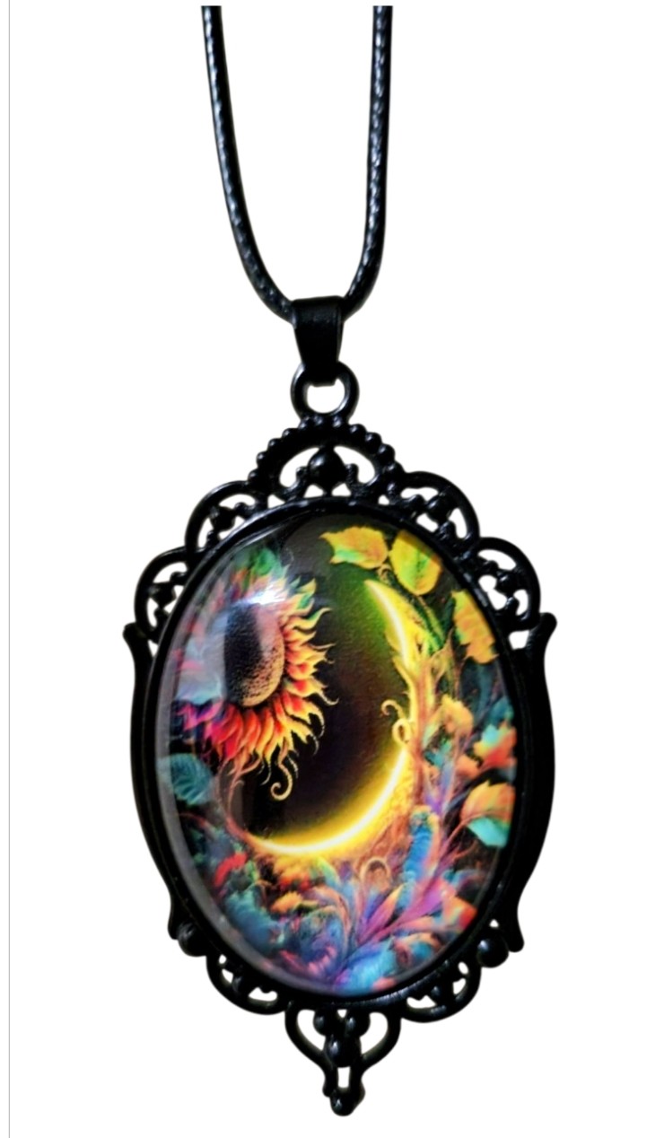 Gothic Style Glass Oval Pendant Necklace with Sunflower Design Black Rope Chain for Women Gothic Style Glass Oval Pendant Necklace with Sunflower Design Black Rope Chain for Women Gothic Style Glass Oval Pendant Necklace with Sunflower Design Black Rope Chain for Women