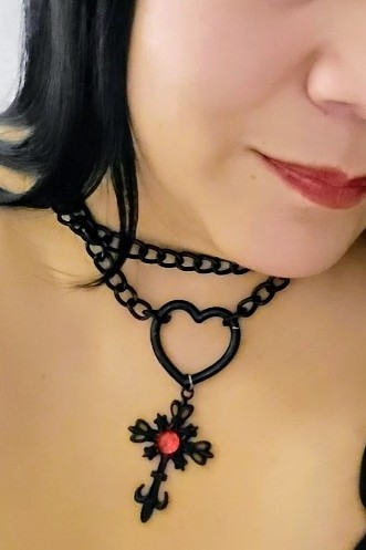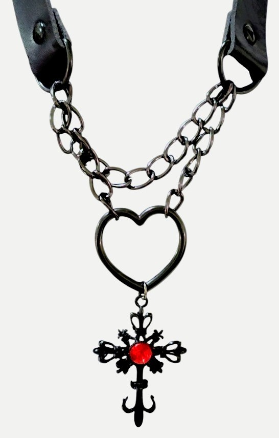 Distinctive Pendant: the necklace showcases a black chain with a heart and red gem cross pendant. It's a unique piece that stands out. If you prefer a different style, this is the right choice for you!