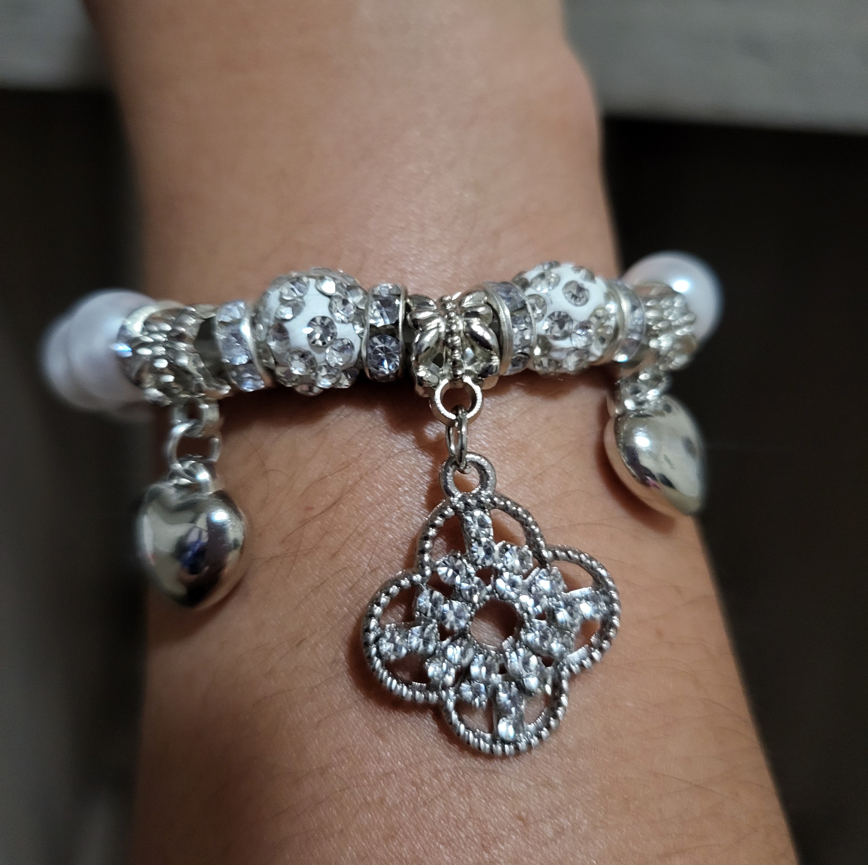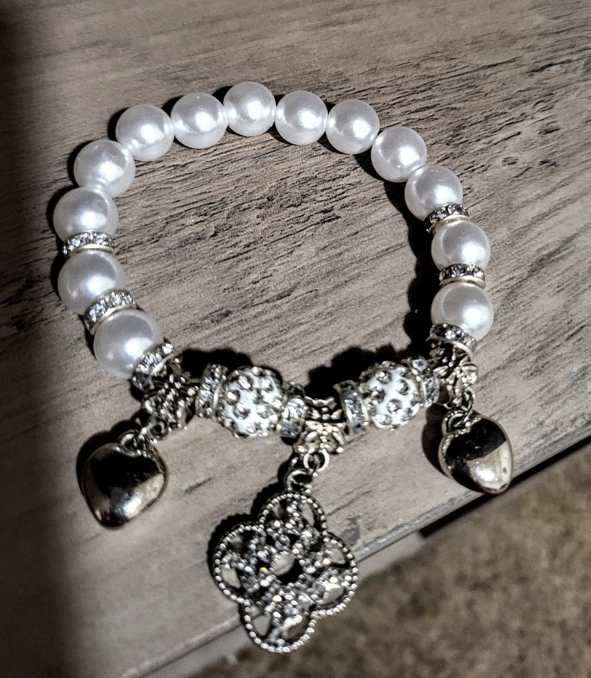 Elegant design: This pearl bracelet features a beautiful white and silver finish with a charming heart and bell accents. The stretchable bracelet ensures a comfortable fit for all sizes. Adapts to your wrist.