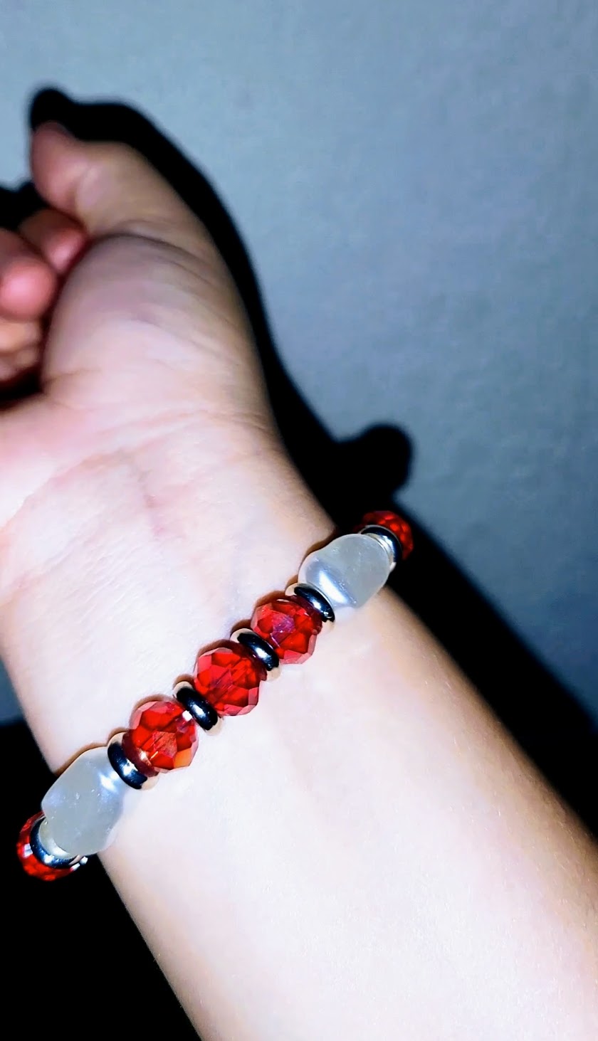 Elegant Beading: This bracelet features red and white beads. The simple design ensures it complements any outfit.